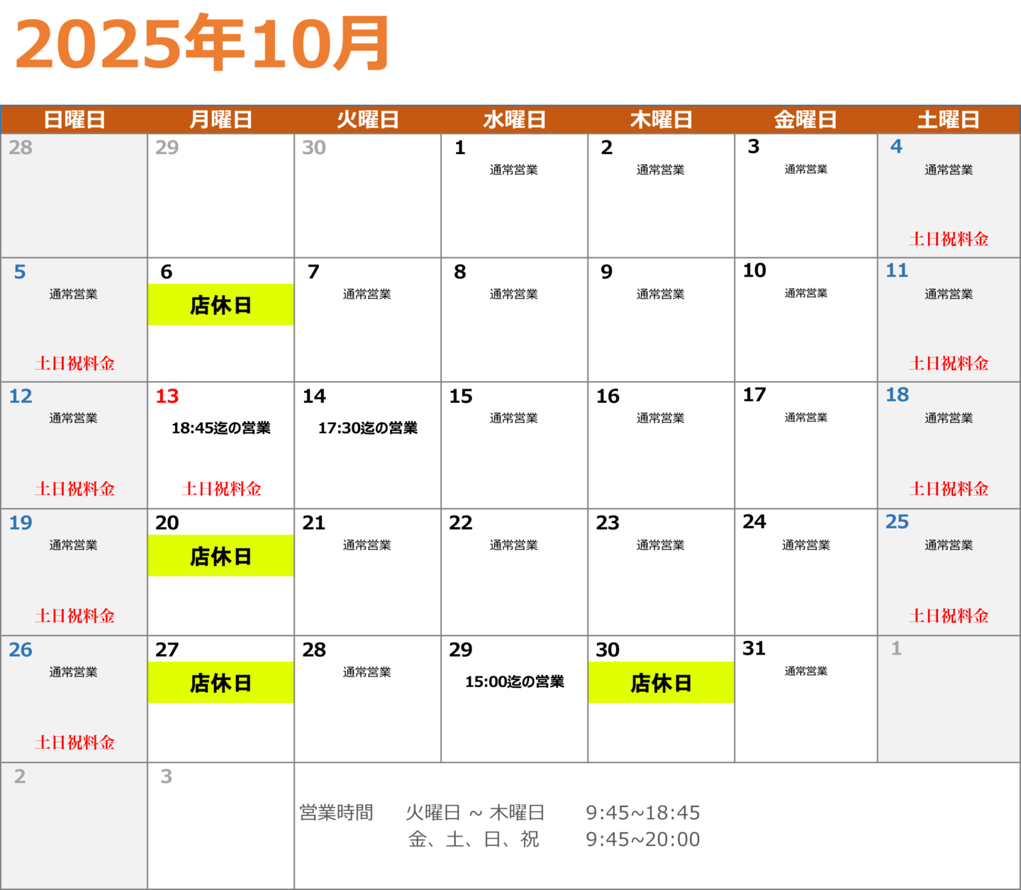 金・土・日・祝:9:45~20:00